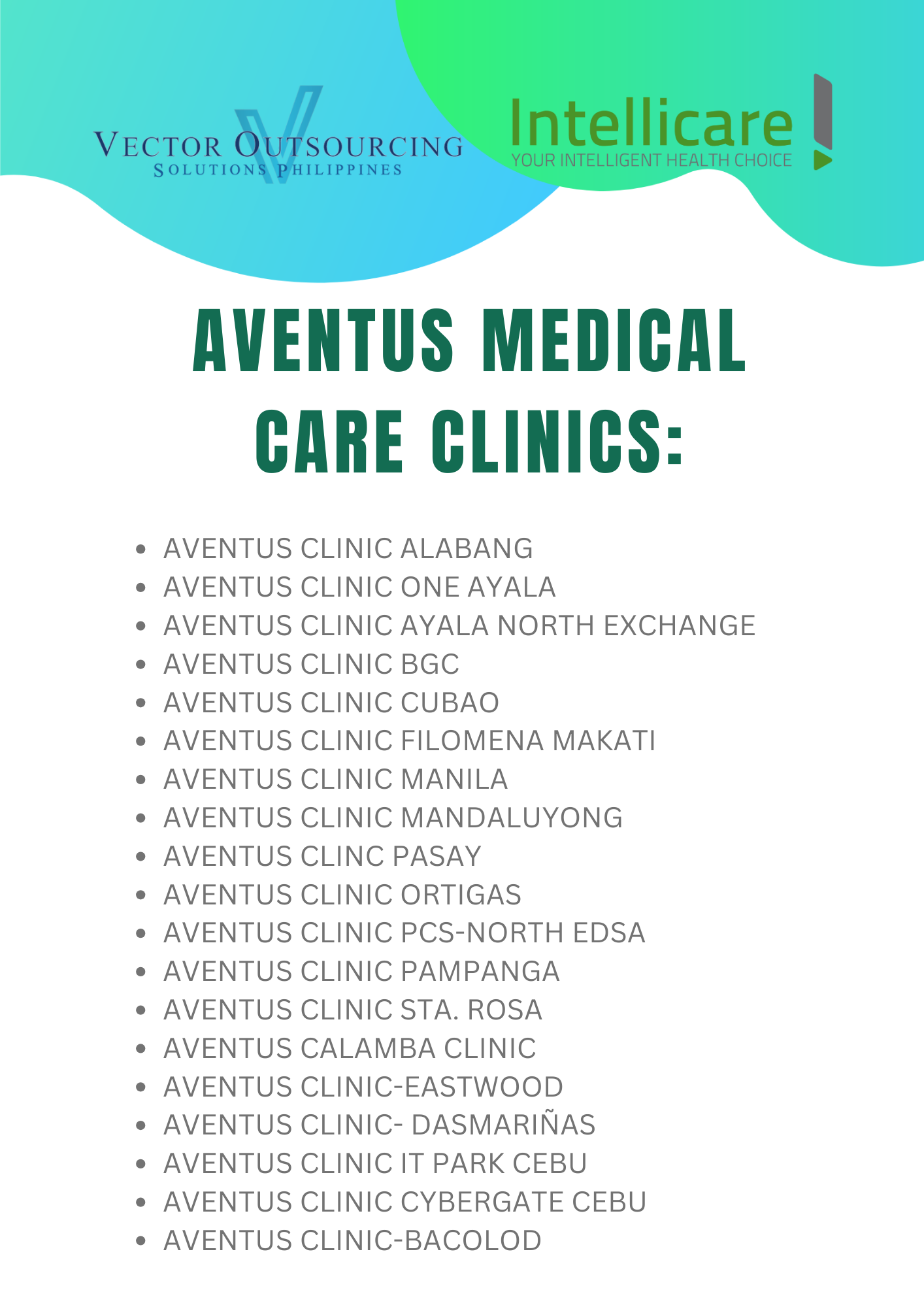 For those residing outside Metro Manila, kindly fill up this Google Form: APE - For Non Aventus Clinic and we'll be coordinating your schedule and location, with a partner clinic/hospital near you. You will be receiving an email from the Human Resources Department once we got your schedule and assigned clinic.